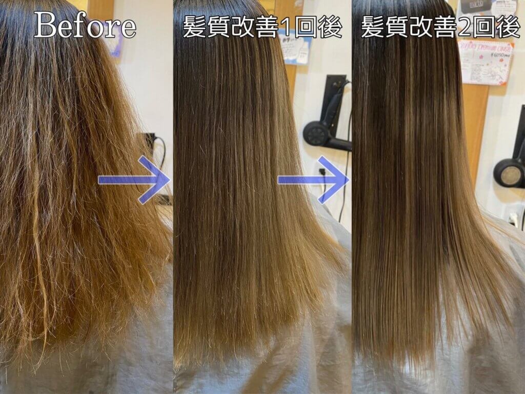 be’leefの髪質改善は、3回コースで《艶髪・ダメージケア・うねり解消》が可能です。