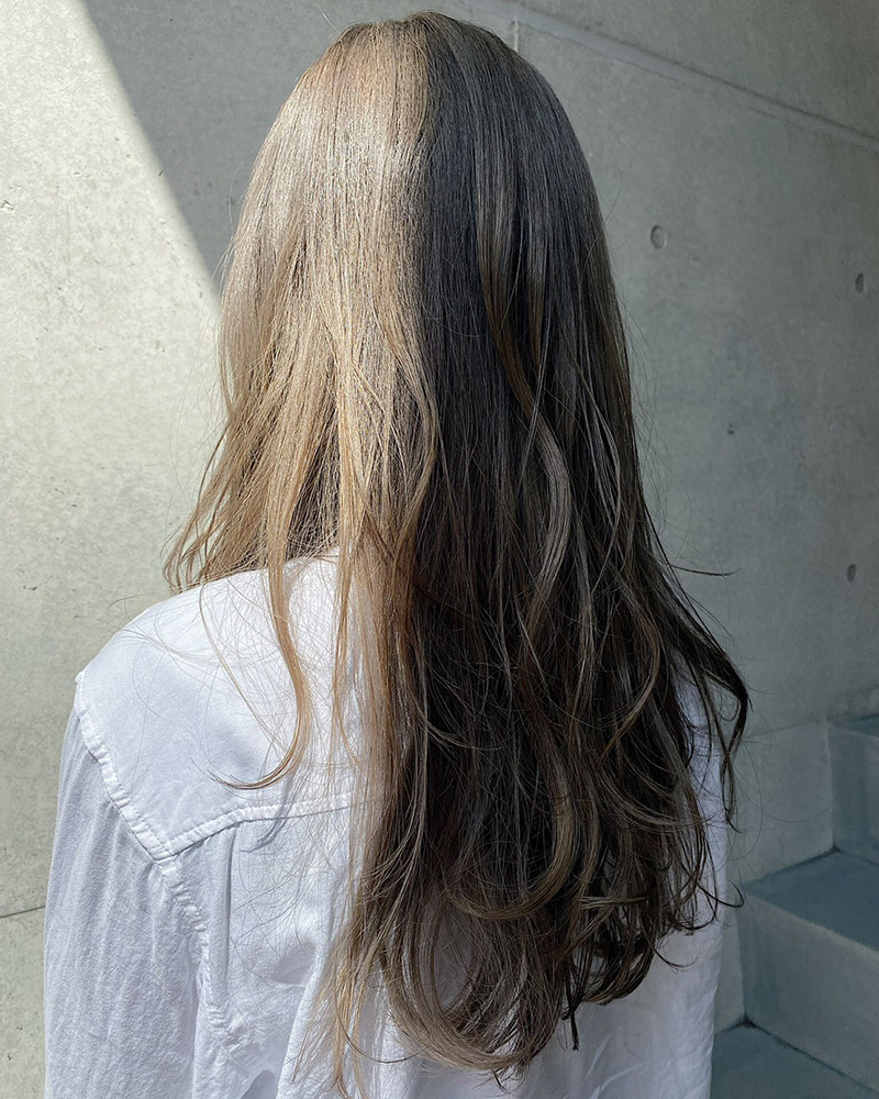 ですが、シークレットカラーは従来のカラーよりもブリーチ総量10%と大幅に少なく、ダメージレスでツヤ、発色、透け感を出すことが可能です。