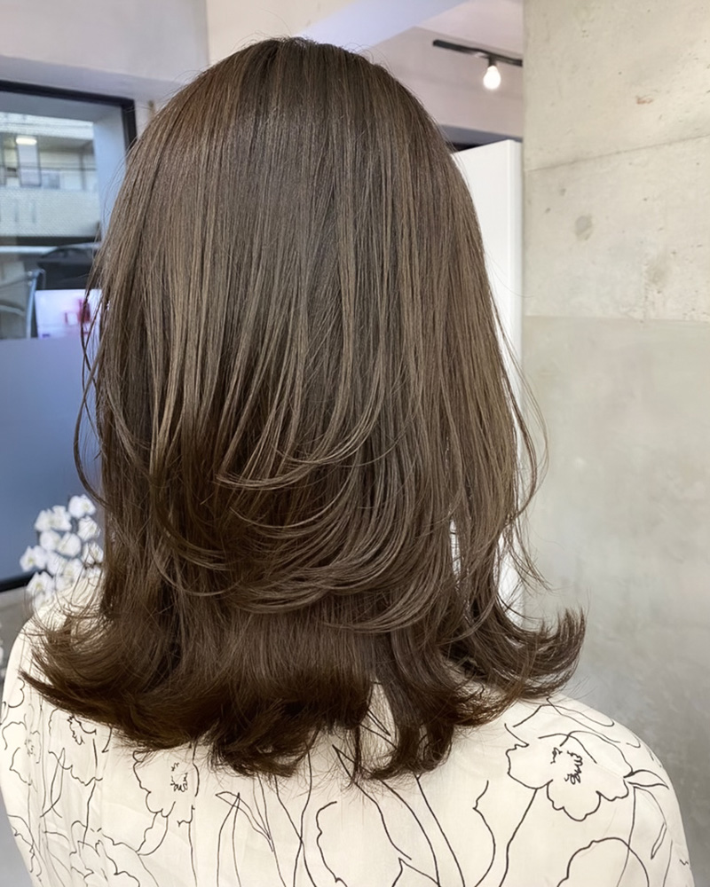 2〜3層の色味を入れるので、色落ちも楽しめ、さらに従来のカラーの施術時間よりも半分の時間で染められることが可能です。